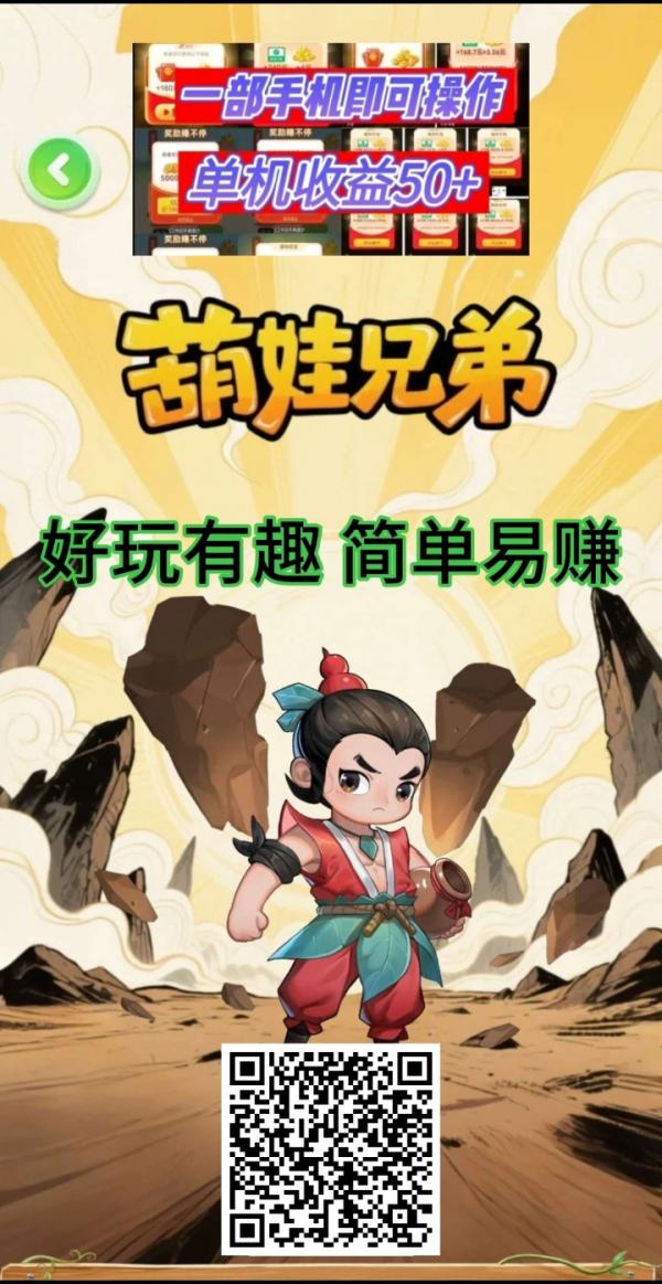 葫娃兄弟推广奖励十分可观,没有天花板,直还有藤葫质押玩法,增加游戏趣味以及收入,快来试试吧。